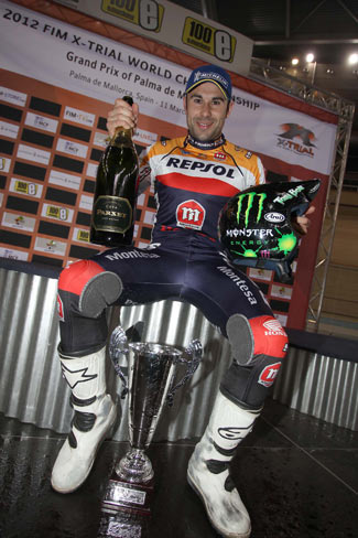 El trial Indoor de Palma de Mallorca ha sido el más emocinante y apretado de los vistos hasta ahora, ya que la lucha por la victoria se ha extendido hasta el último momento entre los cuatro pilotos de la final, siendo finalmente para Toni Bou por apenas un punto frente a Cabestany. Fantástica tarde-noche motera la vivida en el velódromo Palma Arena con la celebración del Campeonato del Mundo de X-Trial o Indoor, además de la exhibición de freestyle y Dirt Jump, un doble espectáculo que ha hecho disfrutar a los miles de aficionados que han poblado las gradas. Las grandes estrellas del freestyle han sido Edgar Torronteras en motos, que además ha realizado sus habituales demostraciones de carisma y simpatía, y Bienve Aguado y "Sherwy" que a lomos de sus bicis han puesto patas arriba las tribunas del Palma Arena. Pero lo mejor ha sido la tremenda lucha por la victoria en el mundial de trial, con los cuatro más grandes del circuito disputando la finalísima, Toni Bou (Montesa), Albert Cabestany (Sherco), Adam Raga (Gas Gas) y Takahisha Fujinami (Montesa), nada menos.