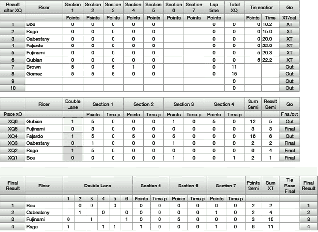 Raga sumaba un fiasco en este obstáculo, al igual que Gubian y Fajardo. Este último sumaba otros dos cincos en las zonas dos y tres, mientras que Gubian fallaba en la cuatro, con lo que ambs quedaban fuera de la final, siendo la quinta plaza para Gubian y la sexta para Fajardo. Raga fue el primero en hacer frente a las zonas en la final, ya que fue cuarto en la semifinal, posición en la que se mantendría también al final de la noche, perdiendo su oportunidad de arrebatar un puesto en el podio ante Fujinami. Tanto Cabestany como Bou se encontraban igualados en la suma de puntos de la semifinal y en la final las zonas se debían realizar en sentido inverso. Albert dio a Toni un respiro cuando se dejaba un punto en una de las carreras en paralelo y después sumaba un punto más en la última zona, lo que finalmente daba a Bou paso libre para sumar su quinta victoria consecutiva y mantenerse invicto hasta la fecha.