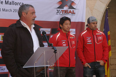 Todos los representantes políticos, tanto D. Fernando Gilet, Regidor dEsports del Ajuntament de Palma, D. Damiá Vich, Director General del IME, D. Javier Morente, Director General dEsports del Govern, D. Joan Antoni Ramonell, Director General dEsports del Consell, han destacado la gran importancia que tiene para Mallorca acoger un evento de este nivel, felicitando a 100 Emocions por el esfuerzo para conseguir esta nominación. Al igual que D. José Yuste, Presidente de la Federación Balear de Motociclismo, que sin duda es una de las personas más felices viendo que Mallorca vuelve a acoger un mundial de su especialidad favorita y que practica desde su juventud. Por su parte, Toni Bou ha declarado que está encantado de volver a Mallorca, donde se coronó campeón del mundo en 2010 y donde espera y desea repetir victoria. Mientras el japonés Takahisha Fujinami dio la nota simpática al despedirse de los asistentes con un gracies en mallorquín que hizo sonreir a todos los presentes en el acto. Un gran éxito para la presentación de un gran evento que mañana pasará la reválida en el Palma Arena. Toni Bou será prácticamente campeón si vence en el Palma Arena