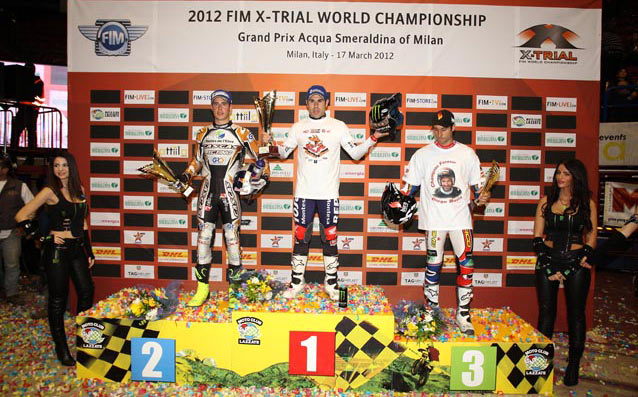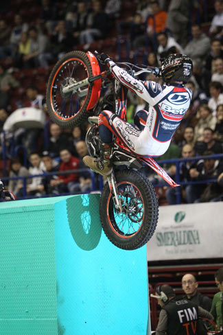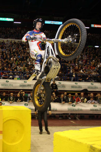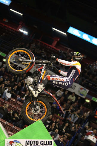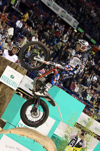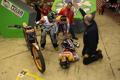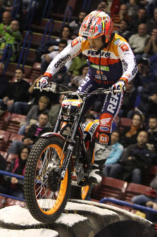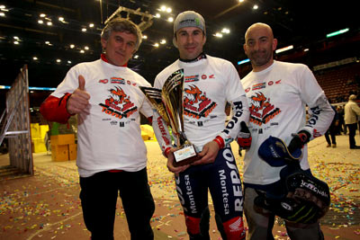 Bou acredita el nuevo récord de títulos en esta modalidad que hasta hoy compartía con Dougie Lampkin, antiguo compañero de filas. Toni Bou ha ganado 28 de las 35 pruebas puntuables para el Campeonato del Mundo Indoor en qué ha participado desde que en 2007 empezó a competir como piloto de Montesa; ha finalizado segundo en seis de ellas y en tan solo una quedó fuera del podio. Unas cifras impresionantes para este piloto que nació el 17 de octubre de 1986 en Piera (Barcelona) y que a sus 25 años de edad ya posée once títulos mundiales de trial: seis en la modalidad indoor y cinco, también consecutivos y siempre a los mandos de la Montesa, al aire libre. Toni Bou: "Por un lado estoy muy feliz, ya que ha sido un día muy especial en el que he pensado toda la semana. Este sexto título y las seis victorias de seis posibles son algo fantástico. Por otra parte, me hubiera gustado celebrarlo de otra forma. He sufrido una caída muy extraña, con un fuerte golpe en la espalda y la cabeza. Me he repuesto del mareo y en caliente he conseguido ganar la zona de desempate pero en estos momentos sería incapaz de lograrlo". Àdam Raga: "Estoy bastante satisfecho por el resultado. Las sensaciones han sido muy buenas y el trial me ha gustado, porque las zonas eran complicadas pero también selectivas, de modo que aunque hemos cometido algún fallo al principio, hemos podio recuperarlo arriesgando más en otras secciones. Ha sido el día que más cerca hemos estado del triunfo y ha sido una pena perder la victoria en la carrera en paralelo de desempate, pero me quedo con que ha sido un buen día y estoy contento. Hemos vuelto a la buena línea y esto es lo importante. En unos días toca volver al campeonato de España y después habrá que rematar el subcampeonato en París".