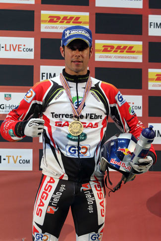 Fajardo fue el primer piloto que lograba completarla, sin embargo sumaba dos penalizaciones de tiempo, mientras que Bou daba todo un recital de pilotaje arrancando los aplausos del público tras un cero impresionante. La semifinal estuvo muy apretada entre Ferrer, Raga y Cabestany, todos ellos sumando dieciséis puntos. Fujinami, Fajardo y Bou se habían asegurado el pase a la final, lo cual dejaba a Bou ya sin opciones de luchar por el subcampeonato, que se quedaba en manos de Cabestany. En la final Bou estuvo de nuevo muy superior al resto, completando su pleno de victorias, la mejor manera de finalizar la temporada indoor y demostrar que es el merecido campeón. Tras el podio se entregaron las medallas a los tres mejores de la clasificación final y bou recibió también como regalo un reloj Tag Heuer.