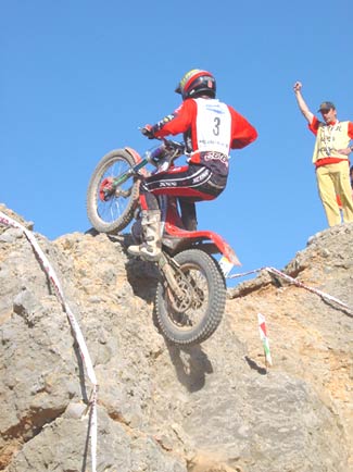 La penúltima zona del recorrido consistía en pasos sobre piedras no de mucho tamaño, pero donde había que afinar de lo lindo, con un escalón fuerte más o menos a la mitad, una subida estrecha entre rocas y un espectacular escalón al final que de todas formas no representaba mucho problema para los pilotos debido al excelente agarre del terreno, aunque las piedras sueltas dentro de la zona podían jugar alguna mala pasada. Aquí los ceros eran también generales, con un único uno para Pascuet, y la mala suerte de los fiascos repartidos esta vez entre los jóvenes de Beta, Toni Bou y nuestro Manzi.