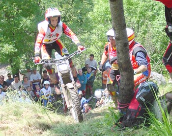 Por otra parte el retorno de Dougie Lampkin a la primera plaza del podio, tras verse relegado a la tercera posición por sus dos compañeros de equipo en Mallorca, era la primera noticia destacable. Y es que como se preveía el bueno de Dougie no se impone con tanta facilidad como en años anteriores, y la oposición es cada vez más fuerte, aunque hay que decir que en Bossost el británico dio todo un recital, con una primera vuelta impresionante, en la que dejaba prácticamente sentenciado el trial, con la sola amenaza del siempre combativo Takahisa Fujinami. Suponemos que en Bossost Lampkin quería demostrar, y demostró, de lo que es capaz incluso con todos sus rivales en carrera.