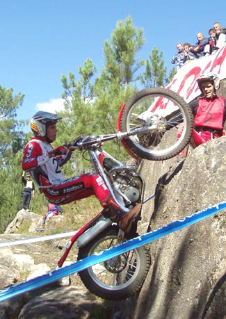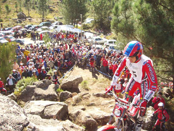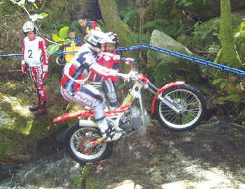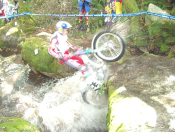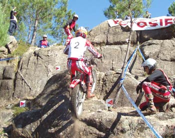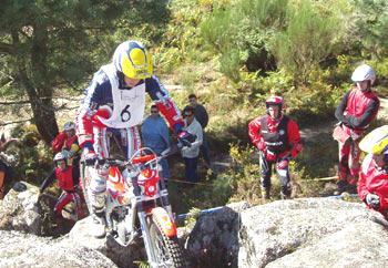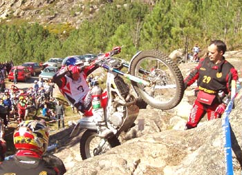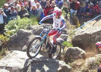 Lampkin y Raga se distanciaban claramente del resto firmando fantásticas pasadas por las difíciles zonas de Entrimo, mientras Freixa no podía mejorar y poco a poco iba sumando puntos que cada vez le retrasaban más, lo mismo le sucedía a Fujinami. Pero es que tanto Lampkin como Raga estaban realmente increibles, no fallaban ninguna, los ceros se sucedían uno tras otro, las zonas las ejecutaban de modo impecable y el público alucinaba con el pilotaje de estos dos grandes maestros, aplaudiéndoles a su paso, y es que el espectáculo lo merecía.