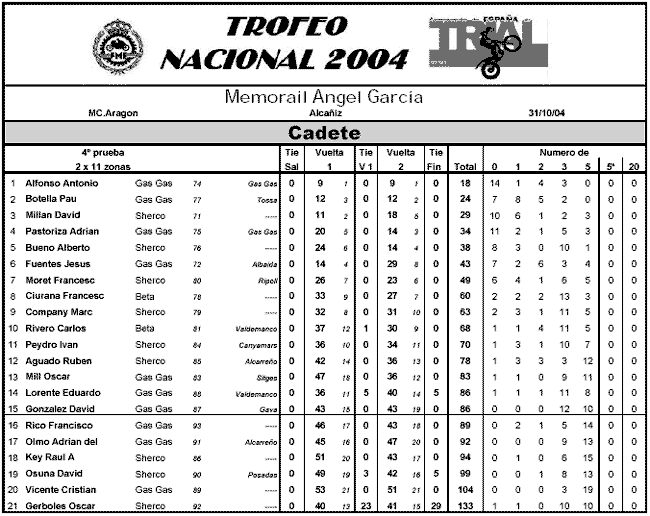 | CLASIFICACIONES COMPLETAS ALCAÑIZ | ||||||