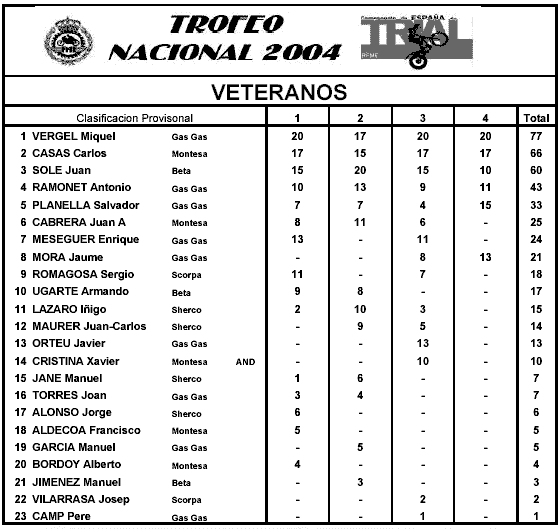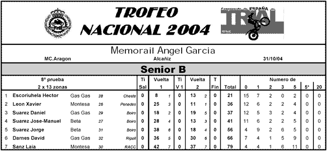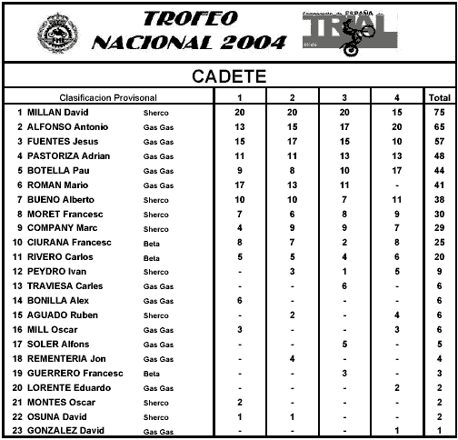 | CLASIFICACIONES FINALES CAMPEONATO DE ESPAÑA 2004 | |||||||