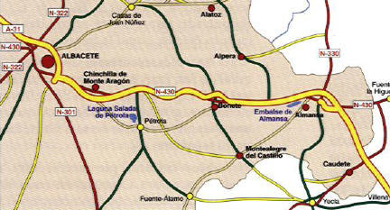la nacional 430, a 150 kilómetros de Valencia, por Almansa (por la