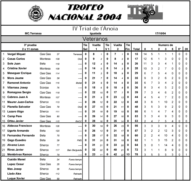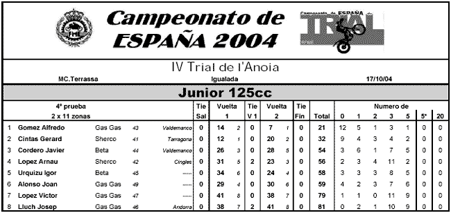 Jeroni Fajardo empeoraba notablemente su actuación de la primera vuelta pero lograba mantenerse segundo gracias a la ventaja acumulada, lo que le coloca ya como uno de los candidatos a la victoria en cada prueba, pues no podemos olvidar que obtenía su primer triunfo en la cita anterior, celebrada en Villameca. Albert Cabestany cerraba el podio y aumenta su ventaja para lograr el subcampeonato frente a Marc Freixa, que era cuerto. Tras ellos se colocaban Pascuet, Oliveras, Cuerdo, Pons y Gibert.