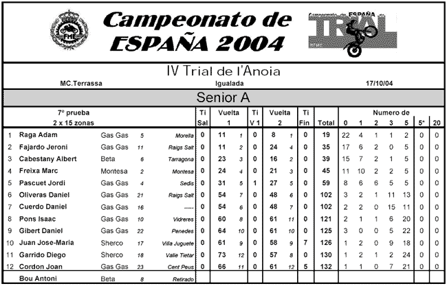 Adam Raga se proclamaba campeón de España de trial por todo lo alto, logrando la quinta victoria de la temporada en la prueba celebrada en Igualada, penúltima del campeonato, y además de forma aplastante. Jeroni Fajardo y Albert cabestany le acompañaron en el podio.