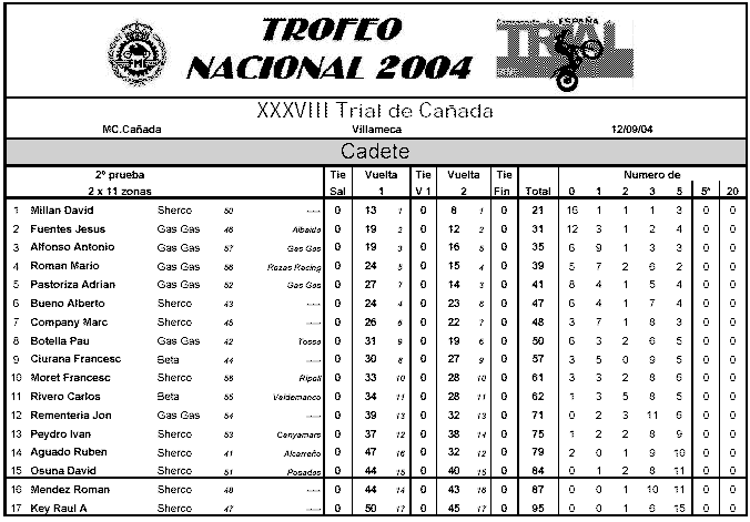 | CLASIFICACIONES COMPLETAS | |||||||