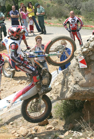 - Las prisas fueron la tónica de la primera vuelta, y los pilotos llegaron pero que muy justos a la zona quince, tanto que muchos de ellos ni siquiera se bajaron de la moto para mirarla. El más perjudicado fue Albert Cabestany, que "palmó" dos puntos por tiempo, lo que al final del trial le relegó a la segunda plaza.