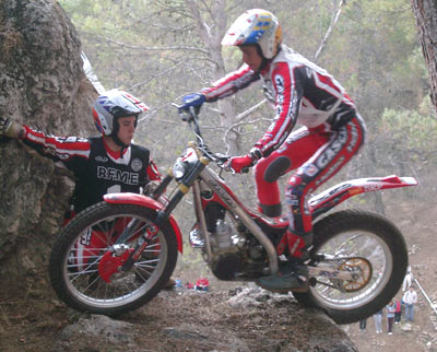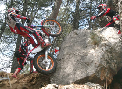 La apretadísima agenda de los pilotos top hace que el ritmo de competiciones sea realmente brutal. La semana pasada han terminado el Mundial Indoor, recorriendo casi toda Europa y países como Rusia y Argentina, ahora y sin descanso alguno comienzan los triales naturales, los de verdad, los auténticos. El Mundial dará comienzo en un par de semanas en Portugal, y este fin de semana se iniciaba el "minimundial", el Campeonato de España, que una vez más vuelve a ser centro de atención de todo el panorama trialero, y no sólo en nuestro país. El motivo es claro: los mejores pilotos del mundo corren aqui, y eso incluye al actual Campeón del Mundo Outdoor, el japonés Takahisa Fujinami, al siete veces campeón, el británico Dougie Lampkin y, como no, a los campeones del Mundo Indoor Adam Raga y Albert Cabestany, a los que se añaden Marc Freixa, Jeroni Fajardo, Toni Bou, etc.