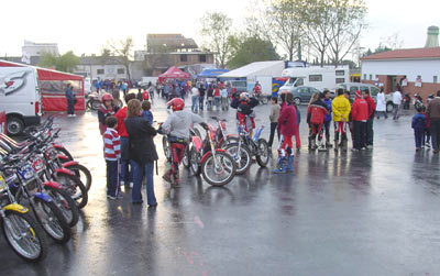 Esta alegría y muchedumbre del domingo contrastó un poco con una cierta tristeza del sábado. El paddock, situado casi en el centro urbano, estaba bastante pobre. Los habituales seis camiones de siempre (Gas Gas, Beta, Sherco, Montesa, Scottishtrial y RFME), algunas carpitas de pilotos de otras categorías, que cada vez son menos, y poca actividad más, aparte de los chavales pidiendo autógrafos y regalos a todo ser viviente que se les cruzase en el camino.