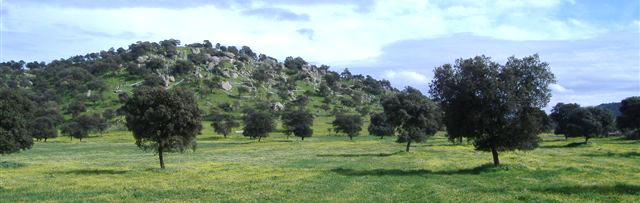 la mitad norte está ocupada por dehesas, especies arbóreas forestales