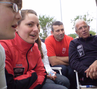 Las pilotos estudiaban variaciones de las trazadas buscando alguna adherencia pero no era fácil. A la llegada el barro cubría totalmente motos y pilotos.