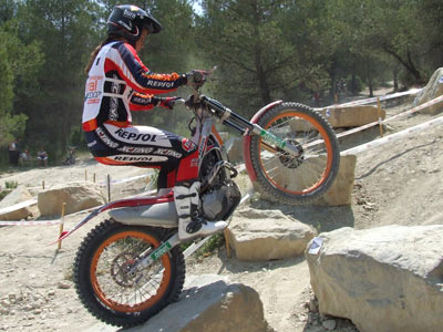 El trial estaba marcado con zonas quizás demasiado difíciles para el nivel medio de las participantes pero en ningún caso peligrosas. Las más complicadas eran dos de estilo indoor, en los bloques de piedra del área.