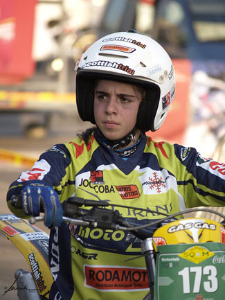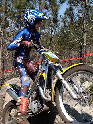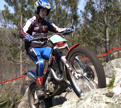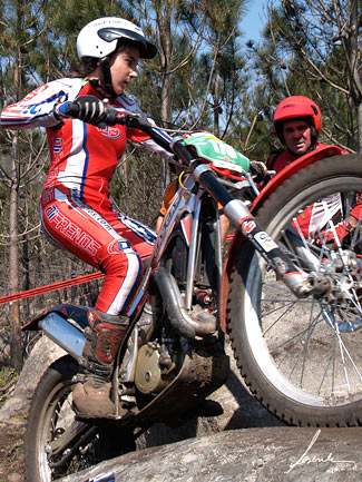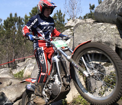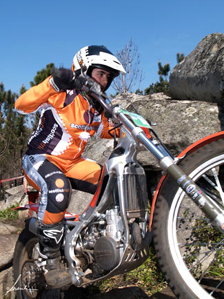 Ya en el lugar de la prueba se fue dando la salida a los pilotos, a razón de dos por minuto, saliendo las chicas en último lugar, sobre las 11 de la mañana. Tampoco faltaba la megafonía ambulante, gracias a nuestros amigos de SpeakerGalicia.com, que nunca fallan en los triales importantes y ya estuvieron en los dos días del año pasado así como en las pruebas del Mundial y el Nacional celebradas en los últimos años en Galicia. Con un coche fueron anunciando la prueba por toda la localidad durante el sábado, y después desde al paddock hasta las mismas zonas siguieron a los pilotos contando todas sus evoluciones, algo hasta ahora nunca visto en un trial de la Copa de España de Féminas.