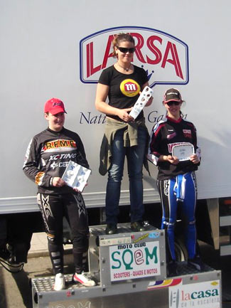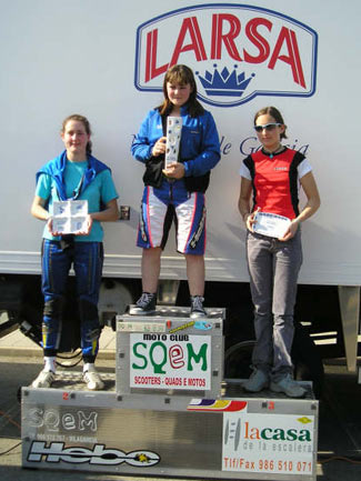 Lo mismo le sucedió a la tercera gallega en competición Emma Castañeiras, con el problema añadido de tener que desmontar y darle la vuelta a la moto para evacuar todo el agua que se había tragado, haciéndola perder unos valiosos minutos y siendo finalmente octaba tras Sofía Pedrosa, mientras cerraba la tabla Pilar Murillo.