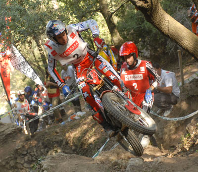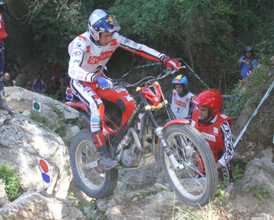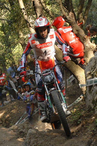 La dificultad para ellos estaba entonces en saber aguantar la presión sin cometer un sólo error, pues el más mínimo fallo podía dar al traste con una buena clasificación. Toni Bou (Montesa) y Adam Raga (Gas Gas) eran los primeros en distaciarse del resto al ir enlazando cero tras cero de manera magistral pero era el nuevo Campeón del Mundo el que se colocaba en cabeza cuando Raga se dejaba un punto en la zona 4. Poco duró su ligera ventaja, pues fallaba al dejarse también un pie en la zona 11, y ambos no volverían a cometer errores.