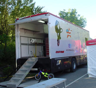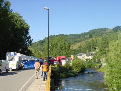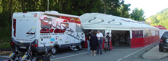 Nuevamente la pequeña calle que bordea el pueblo, junto al río Tremor, se convertía en improvisado paddock, en el que las carpas y camiones daba un inusual colorido junto a las casitas con tejados de pizarra. Un paddock estrecho y algo incómodo pero que a cambio de estas incomodidades tenía la ventaja de estar en un bonito entorno, y con las primeras zonas bastante cercanas.