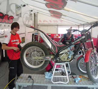 trabajando en la carpa de Gas Gas antes de la salida