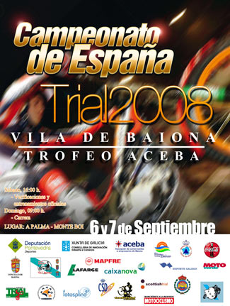 Baiona volverá a acoger, por segundo año consecutivo, una prueba puntuable para el Campeonato de España de Trial. Organizada por la Peña Moteros Val Miñor, cuenta con el patrocinio de ACEBA - Asociación de Comerciantes e Empresarios de Baiona-, la Consellería de Innovación, Industria e Comercio de la Xunta de Galicia, la Excma. Deputación de Pontevedra, Caixanova, Mapfre, Lafarge y el propio ayuntamiento de Baiona.
