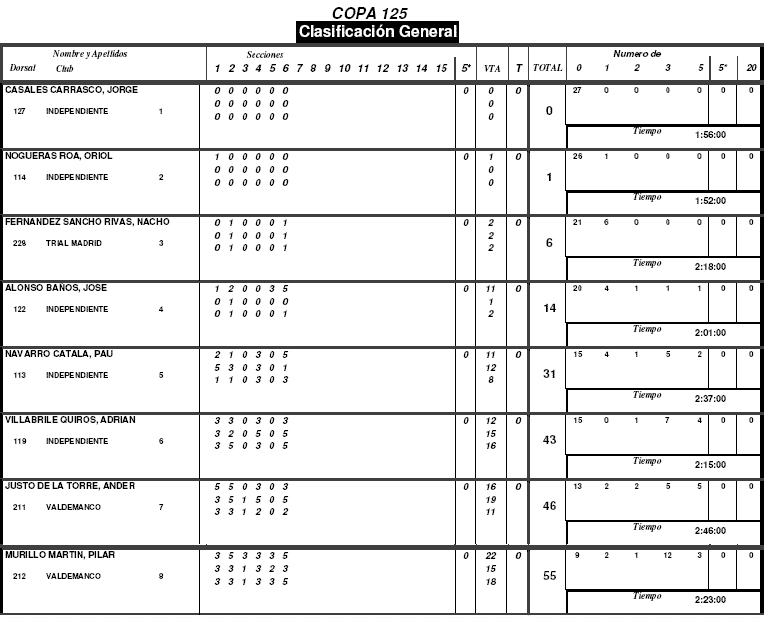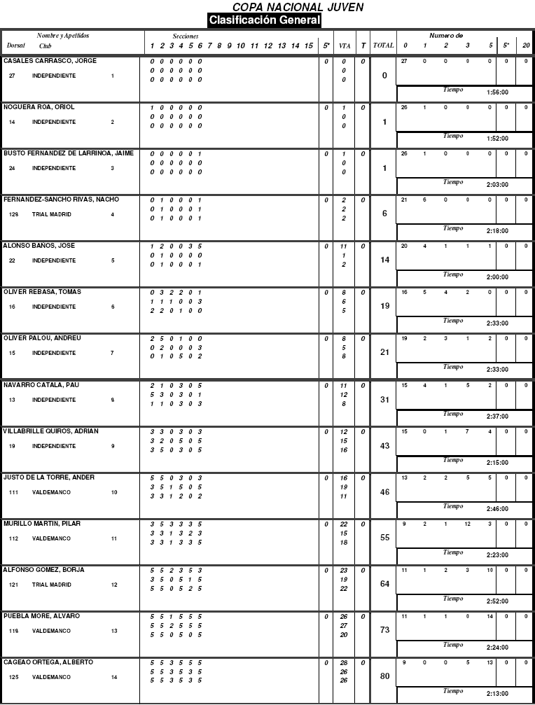 Jorge Casales Carrasco no cometió ningún fallo durante toda la jornada adjudicándose la victoria. Oriol Nogueras y Jaime Busto fueron segundo y tercer clasificados respectivamente, ambos solo pusieron un pie pero Nogueras lo hizo en la zona 1 de la primera vuelta y Bustos en la zona 6 de la primera vuelta, con lo que el desempate jugó a favor del primero en fallar, atendiendo a la normativa del reglamento.