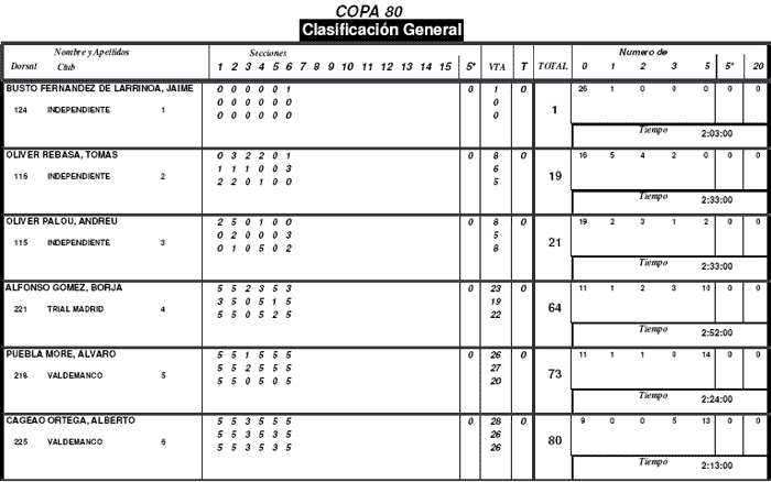 En la categoría de 125 cc fue, lógicamente, Jorge Casales el vencedor, seguido de Oriol Nogueras con 1 punto y Nacho Fernández Sancho con 5. En 80cc la victoria era para Jaime Busto con un punto, seguido de Tomás Oliver con 19 y Andreu Oliver con 21.