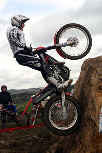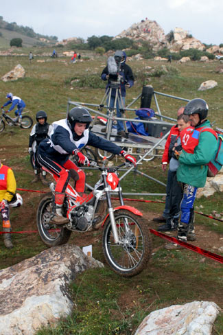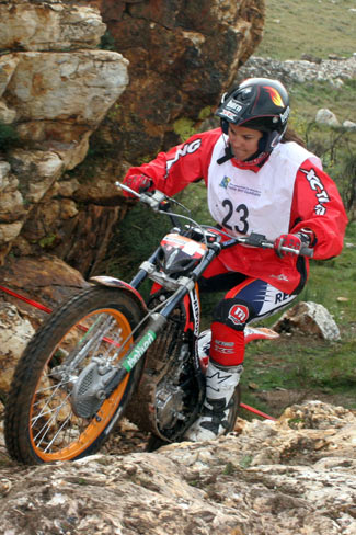 David Millán sobre su Sherco también estuvo realmente fantástico en su debut, y se mostró muy contento e ilusionado con la experiencia de competir con los mejores del Mundo. Aunque algo asustado con el nivel de las zonas, mayor que en muchas pruebas del Mundial, y con el handicap de tener que ir abriendo zonas, lo que supone no ver algunas trazadas y posibilidades de hacer la zona, David sólo sumó 10 puntos más que Alfredo, finalizando en el noveno puesto, un buen resultado también por ver que es capaz de hacer unas zonas que de entrada se veían dificilísimas, con lo que el empujón moral y de autoconfianza fue enorme y lo más positivo de la prueba.