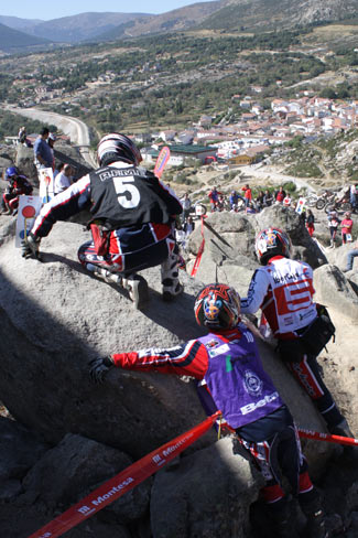 El trial de Valdemanco ha destacado por sus zonas espectaculares en las que los grandes bloques de piedra han sido protagonistas, conformando fuertes escalones, voladas y subidas que parecían imposibles hasta la llegada de los top. Y es que la gran adherencia de la típica piedra granítica de la zona cuando el terreno está seco, permite a los mejores pilotos del mundo hacer cosas que parecen imposibles.