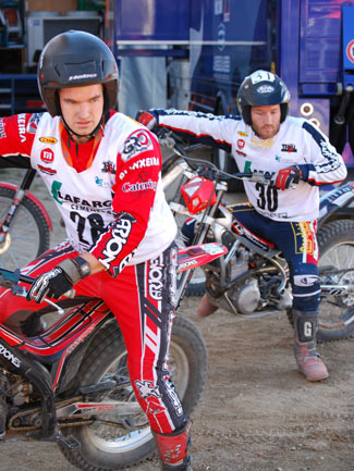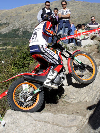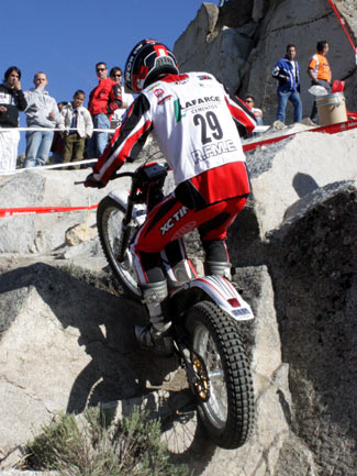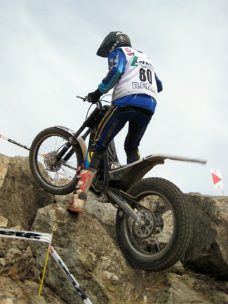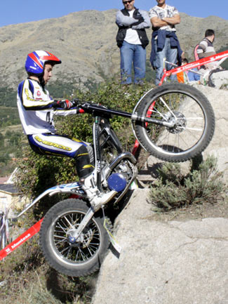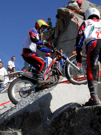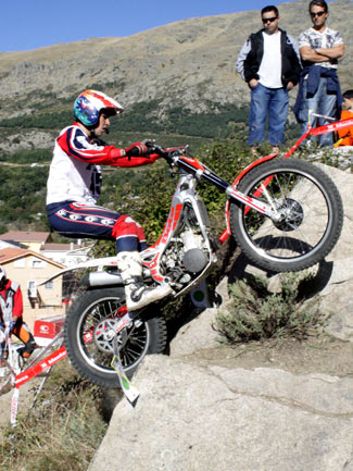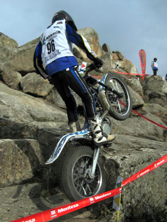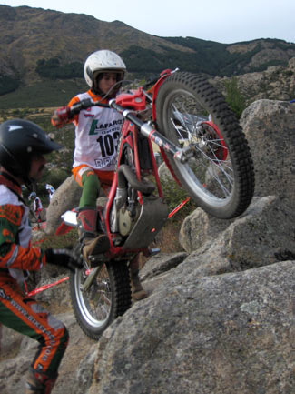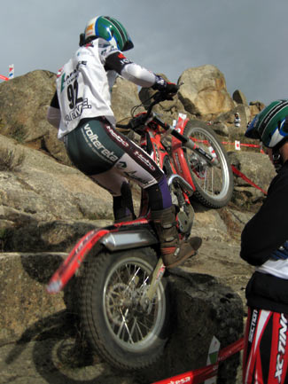 Y es que peor aún que las complicadas zonas fueron las exageradas prisas para poder concluir a tiempo cada vuelta, en un trial mal planteado desde este punto de vista. A parte de que algunas zonas resultaban demasiado largas para poder efectuarlas en minuto y medio, el límite máximo concedido para cada vuelta era prácticamente imposible de cumplir, convirtiendo el trial en una especie de enduro en el que los espectadores asistían al lamentable espectáculo de ver como los pilotos trataban más de realizar deprisa y corriendo las zonas que de mostrar su verdadera habilidad y pilotaje. Sin duda un gran error organizativo que empañó este trial tan bien organizado en otros muchos detalles. Por supuesto el tiempo es un factor a tener en cuenta en las clasificaciones de un trial, pero siempre ha darse dentro de unos límites lógicos que no desvirtúen el espíritu original del trial haciéndolo parecer un enduro.
