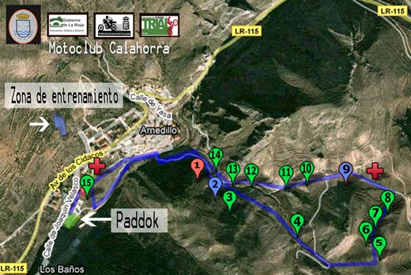 El recorrido tiene su salida en el frontón y nos dirigiremos hacia el barranco de las Yeseras donde nada más comenzar nos encontraremos con la zona Nº 1 sólo para la categoría TR-1, el terreno que predomina son las rampas de tierra y algo de roca. A escasos 100 metros esta situada la zona Nº 2 que solo la hacen las categorías TR-1 y TR-2, rocas que se van puliendo con el paso de los participantes y se quedan un poco deslizantes, y con una salida no difícil pero si espectacular para TR-1. Seguida está la zona Nº 3, con el mismo terreno y siendo la primera zona para los Junior.