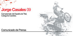 Jorge Casales está considerado ya como la gran promesa del motociclismo gallego y su trayectoria le avala como tal. En el equipo Moto Élite, con sus patrocinadores Rodamoto, Xciting, Arai, TCX y Castrol, le cuidan para que puede llegar a la élite mundial del trial.