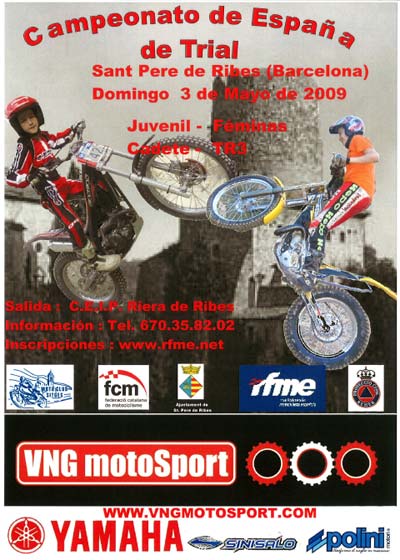 El Moto Club Sitges será el encargado de organizar este trial y ya lo tiene todo listo para el comienzo. La localidad barcelonesa de Sant pere de Ribes acogerá un recorrido al que habrá que dar dos vueltas, contando con 10 zonas para todas las categorías, excepto para los Juveniles, que sólo harán 8 zonas por vuelta. El paddock estará ubicado junto al colegio "CEIP Riera de Ribes" y desde allí mismo se iniciará la competición a las 09.00 horas.