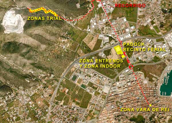 La mayoría de zonas se agrupan en esta ubicación para que sean más accesibles para el público y así puedan seguir de forma cómoda toda la prueba (se puede ir andando a todas las zonas). Además habrá autocares que irán siguiendo el recorrido de la prueba para que la gente la pueda seguir sin tener que coger ningún vehículo (iran rodando desde el recinto ferial, cantera de Can Canyes y Vara de Rey.)