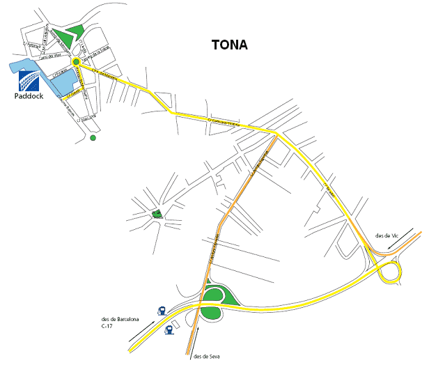 Mapa de llegada a Tona y acceso al paddock
