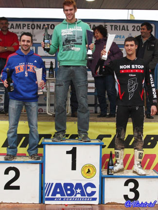 Con 26 años de edad cumplidos el pasado mes de octubre, Toni Bou ha logrado por tercera vez un pleno absoluto que celebró por primera vez en 2009 y repitió en 2011. Toni Bou ha llegado a la última cita de la temporada con nueve puntos más que su rival más inmediato y en situación óptima para revalidar el último título en juego. El pluricampeón ha ejercido como tal desde el primer momento sobre un terreno difícil y ha sumado su cuarta victoria en la presente edición del certamen, las tres últimas consecutivas. |