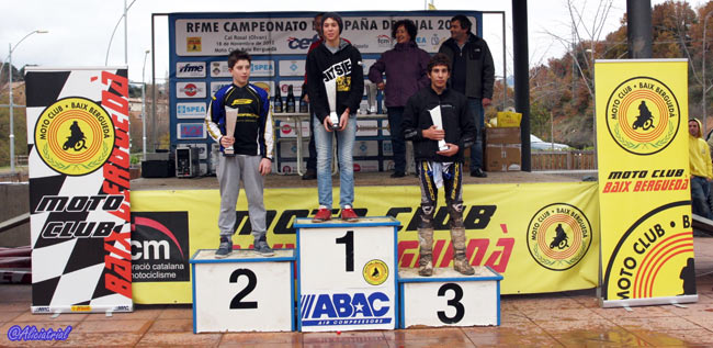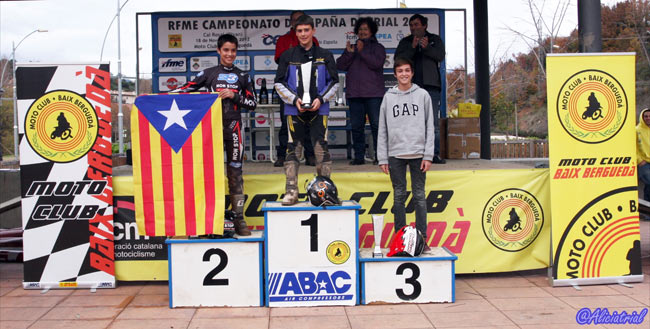 En el campeonato, tras Jaime Busto se coloca subcampeón Nacho Martín y tercero Nacho Fernández Sancho, mientras Arnau Farré es cuarto pero habiendo mostrado una gran progresión a lo largo del año y subiendo al podio en las tres últimas pruebas. Miquel Gelabert, sufría un problema mecánico al romper un retén y quedarse sin freno delantero por lo que se tuvo que retirar. Cadete, Villabrille vence, título para Riba En la categoría de los más jóvenes, Marc Riba llegaba con el título prácticamente en el bolsillo, pero Adrián Villabrille no quería dejar de intentar su asalto al campeonato y conseguía llevarse la victoria tras una gran segunda vuelta en la que deshacía el empate con Riba de la primera. Al final Villabrille era el vencedor con 16 puntos frente a los 19 de Riba, aunque esto no impedía que Riba se llevase el título de campeón, mientras Villabrille era subcampeón.