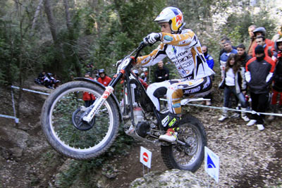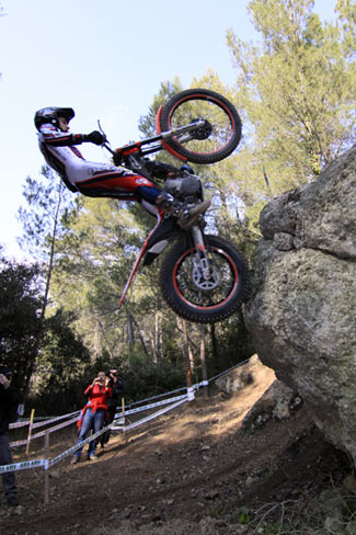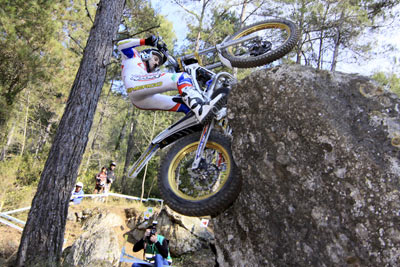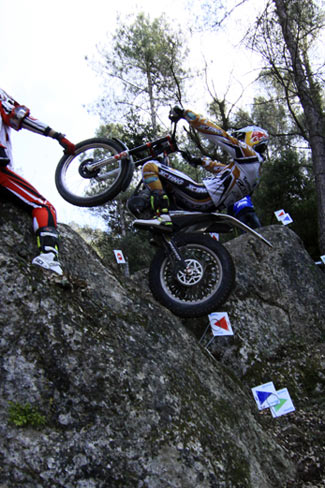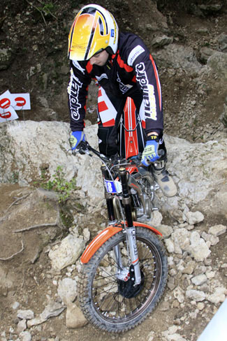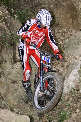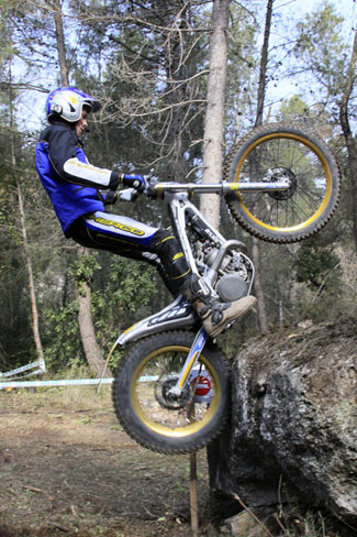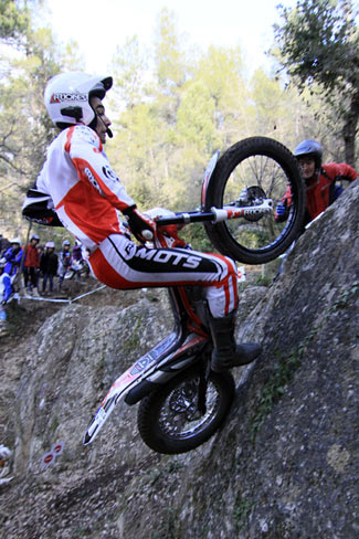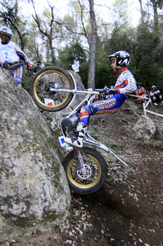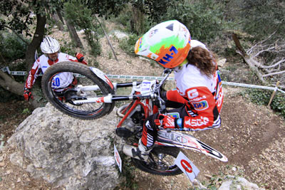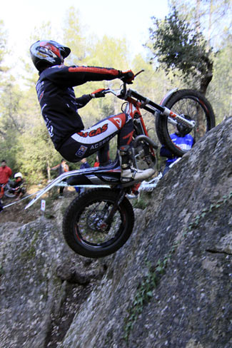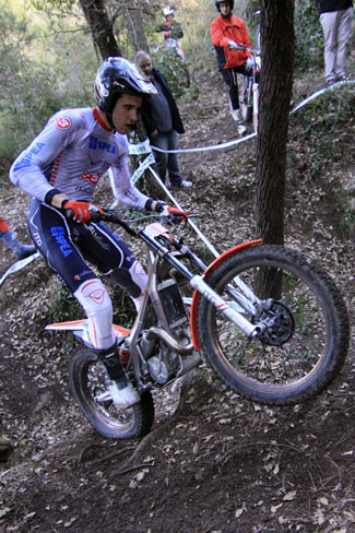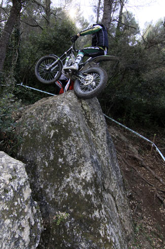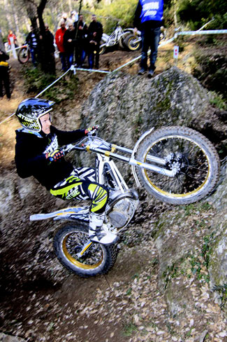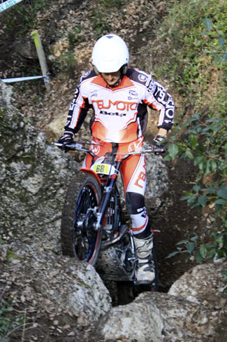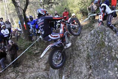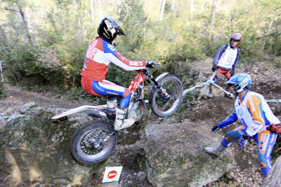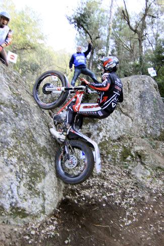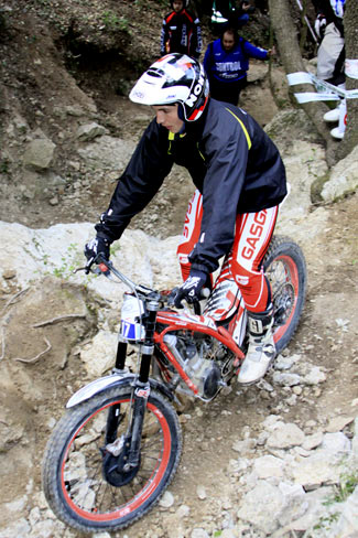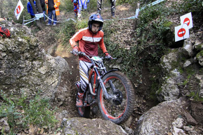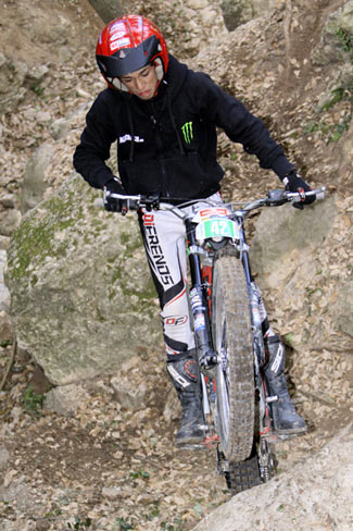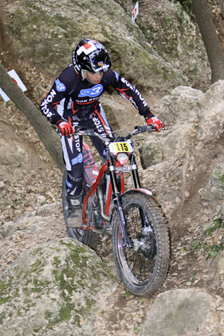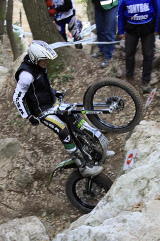 No demasiado lejos quedaba el francés Alexandre Ferrer (Sherco) con 61 puntos, que superaba a Pere Borrellas (Gas Gas) con 88, Pol Tarrés que debutaba sobre la JTG (93), que causó muy buena sensación entre el público, y tras él se colocaba Francesc Moret (Montesa) con 95. Completaban la categoría el sueco Eddie Karlson, ya superando el centenar de puntos con 104, el italiano Gianluca Tournour (116), el actual campeón TR2 que debutaba en la máxima categoría (121) pero tenía la mala suerte de penalizar por tiempo 22 puntos perdiendo por ello dos posiciones, y los franceses Benoit Dagnicourt (121) y Tanguy Mottin (124). La ausencia que se echó de menos fue la de Alfredo Gómez, que como os informamos en la sección noticias ha optado por la oferta de Husaberg para hacer el nacional de enduro y otras pruebas extremas al quedarse sin equipo para trial. Precisamente se encontraba en Italia compitiendo en el Enduro Extremo Hells Gate, animado porque al menos en Husaberg le tratan bien y le dan las gracias por sus esfuerzos.