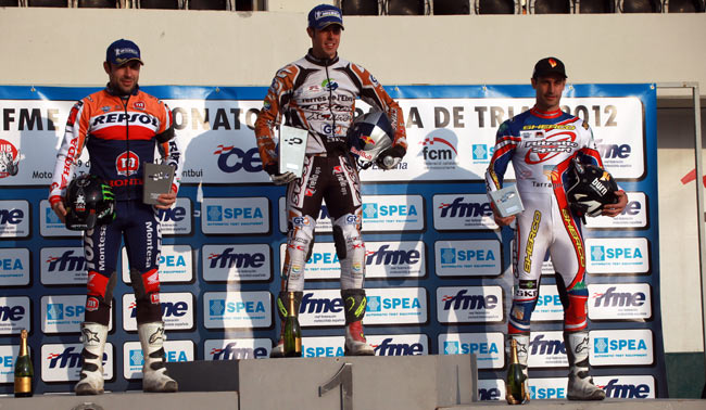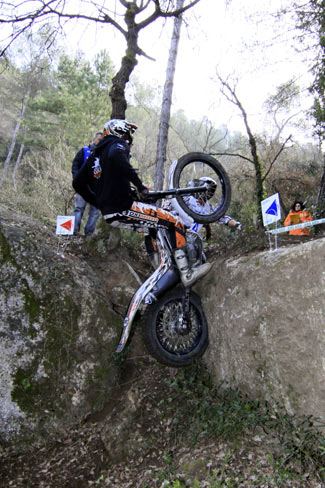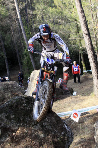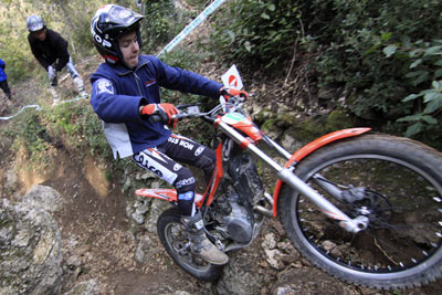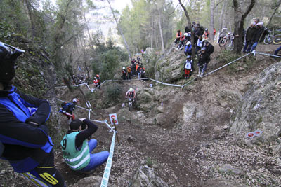 Bou tenía entonces una ligera ventaja, pero cometía un fiasco en la zona 8, cuando en una piedra inclinada que daba paso a una fuerte bajada no llegaba a apoyar bien el carter y se le giró la moto tirándole hacia atrás y penalizando un fiasco en una zon en la que el resto pasaba a cero. Esto le hacía ser superado por Raga en apenas dos puntos. Así Adam Raga se llevaba el primer triunfo de la temporada con un resultado final de 17 penalizaciones mientras Bou era segundo con 18. Mucho más atrás estaban el resto de contendientes, con Albert Cabestany (Sherco) y Jeroni Fajardo (Beta) disputándose entre ellos el tercer peldaño del podio en una lucha también muy igualada. Fajardo era el mejor en las primeras pasadas de cada zona, sumando 19 puntos frente a los 25 de Cabestany, pero este último ejecutaba mejor las segundas pasadas, sumando 20, mientras Fajardo se confiaba y cometía algunos errores tontos que al final le dejaban fuera del cajón. Así con 45 puntos Cabestany completaba el podio mientras Fajardo era cuarto con 48.