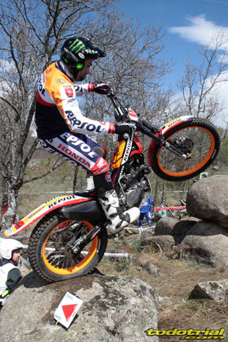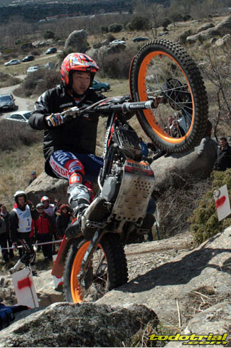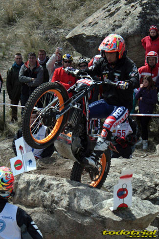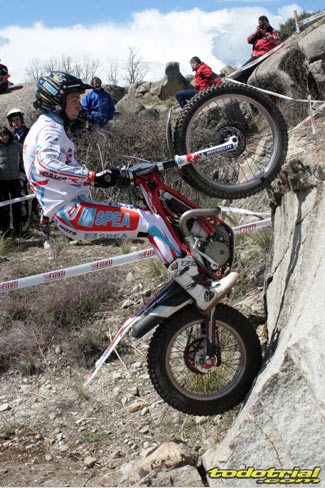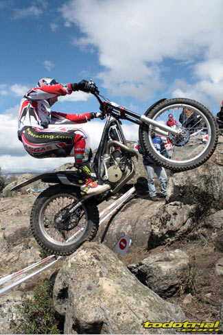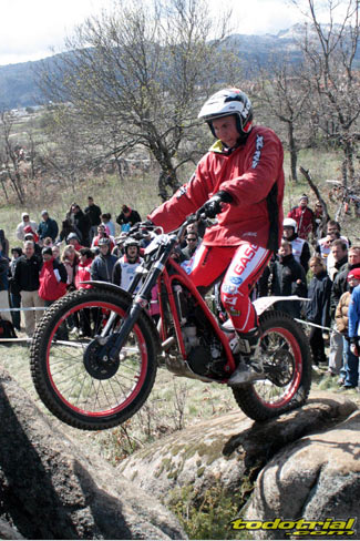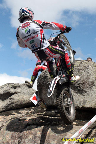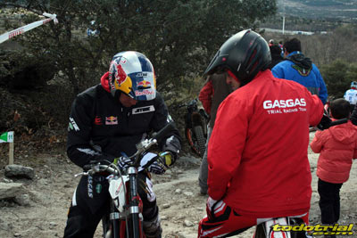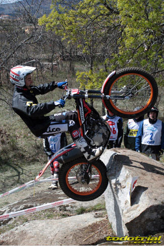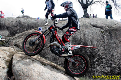 Ahora los pilotos top finalizan el trial en apenas un par de horas, con mucho menor esfuerzo y sin apenas tener que echar ni un par de litros en sus depósitos. En fin, que a los trialeros de siempre les sigue gustando el formato del trial de verdad, como es en el mundial y como ha sido toda la vida, y no estos inventos que desvirtuan el sentido del trial y no llevan a nada. Apretada lucha Raga - Bou Volviendo a lo que dio de sí la jornada, las nubes y el sol se fueron turnando durante toda la mañana, pero la lluvia no apareció por lo que finalmente las posiciones se decidieron por la mínima. Adam Raga era el primero en salir, lo hacía con mucha seguridad y con un ritmo bastante elevado, por lo que rápidamente se separaba del resto de rivales centrándose en su carrera. En su Gas Gas estrenaba una horquilla Tech y los ceros iban sucediéndose uno tras otro. Fajardo y Toni Bou eran los siguientes en salir, y al igual que Raga se mantenían muy constantes y con el cero como única puntuación en las cuatro primeras zonas.