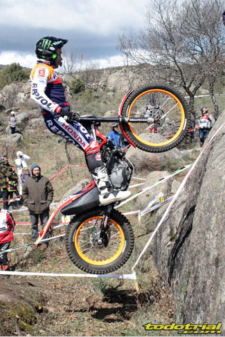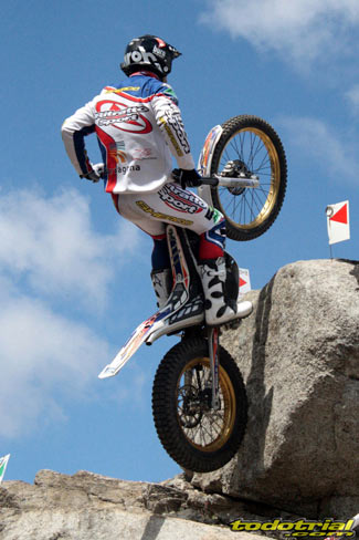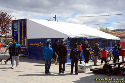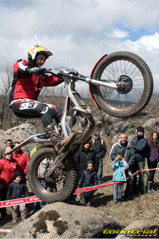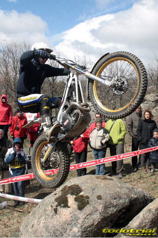 Resulta de agradecer la comprensión de los ayuntamientos que colaboran con el trial y son conscientes de que este es un deporte bastante ecológico, que no daña en absoluto el medioambiente y que proporciona muchas más cosas positivas a la población que negativas. Para la ocasión se habían preparado 12 impresionantes zonas, compuestas en su mayoría por roca granítica, con grandes escalones, vuelos espectaculares y pasos complicados que a buen seguro causarían impresión en el público. Pero justo los días previos al trial la meteorología empezaba a empeorar y el sábado la lluvia e incluso la nieve hacían acto de presencia complicando muchísimo las cosas. El terreno patinaba como el hielo y las zonas parecían imposibles, por lo que en la fase de reconocimiento de las zonas, junto con los pilotos se tomaba la decisión de suavizar la mayoría de ellas, quitando los pasos más espectaculares y dejándolas listas para un día lluvioso y un terreno totalmente resbaladizo.