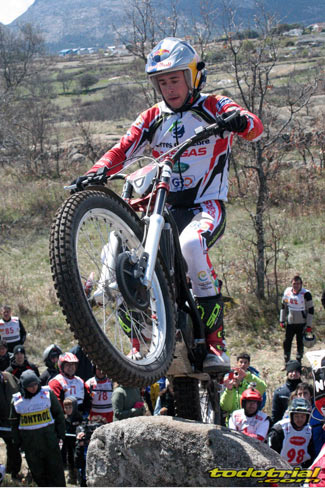La tercera cita del Campeonato de España de Trial se ha celebrado en la localidad madrileña de Lozoyuela - Navas - Sieteiglesias, donde Adam Raga se ha impuesto tras realizar un trial impecable en el que no se ha dejado ni una sola penalización. Toni Bou se ha tenido que conformar con el segundo puesto al dejarse un único pie, mientras Takahisha Fujinami ha completado el podio con 10 puntos. El Campeonato de España de Trial volvía a ponerse en marcha para disputar la tercera prueba puntuable para las categorías superiores (TR1 y TR2) y cuarta para los TR3, TR+35, juniors y Cadetes. Desde 2008 no se disputaba una prueba del nacional en Madrid, por lo que los aficionados de la zona estaban ansiosos por disfrutar de este trial y ver a los mejores pilotos del mundo en acción. Ante la escasez de moto clubes en la zona centro y con los pocos recursos con los que cuentan, era la propia Federación Madrileña de Motociclismo la que se decidía a organizar esta prueba, contando para ello con la plena colaboración del Ayuntamiento de Lozoyuela - Navas - Sieteiglesias, donde estos últimos años se han disputado buenos triales del campeonato madrileño. Resulta de agradecer la comprensión de los ayuntamientos que colaboran con el trial y son conscientes de que este es un deporte bastante ecológico, que no daña en absoluto el medioambiente y que proporciona muchas más cosas positivas a la población que negativas. Para la ocasión se habían preparado 12 impresionantes zonas, compuestas en su mayoría por roca granítica, con grandes escalones, vuelos espectaculares y pasos complicados que a buen seguro causarían impresión en el público. Pero justo los días previos al trial la meteorología empezaba a empeorar y el sábado la lluvia e incluso la nieve hacían acto de presencia complicando muchísimo las cosas. El terreno patinaba como el hielo y las zonas parecían imposibles, por lo que en la fase de reconocimiento de las zonas, junto con los pilotos se tomaba la decisión de suavizar la mayoría de ellas, quitando los pasos más espectaculares y dejándolas listas para un día lluvioso y un terreno totalmente resbaladizo. La lluvia y la nieve del sábado presagiaban un trial muy difícil y pasado por agua, y así amanecía también el domingo, en el que incluso empezaban a caer algunos copos de nieve. Pero al poco tiempo de comenzar la prueba, las precipitaciones daban paso a un fuerte viento que en muy poco tiempo secaba completamente el terreno. Esto hacía que las zonas al final fuesen mucho más fáciles para los pilotos top y que hubiese que afinar al máximo para no cometer ni el más pequeño error. Los pilotos del resto de categorías lo agradecieron, pues pese a ello las zonas no fueron fáciles sino todo lo contrario, como se puede apreciar en unas puntuaciones más bien altas en las clasificaciones. Ya a primera hora de la mañana la afluencia de público era bastante buena, muchos de ellos aficionados a los mandos de sus motos de trial, que pagando una cuota recibían un dorsal y podían seguir todo el recorrido tanto el sábado como el domingo. Muchos aprovecharon la ocasión para ver a los grandes en la carrera o los entrenos y para montar con tranquilidad durante todo el fin de semana. Así con la cuota de inscripción podían seguir la prueba y practicar trial cómodamente colaborando al mismo tiempo con la organización. En cuanto a la participación hubo un total de 73 pilotos divididos de la siguiente manera: 9 en TR1, 11 TR2, 13 Junior, 8 TR3, 5 TR+35 y 13 cadetes, más los 14 pilotos que competían en el madrileño. Por tanto no estuvo del todo mal, aunque siguen siendo cifras lejanas de lo que era habitual hace una década o de como sigue siendo en otros países. Las categorías inferiores eran las primeras en salir. Comenzaron temprano, a las 8:30, con los pilotos que competían en las categorías A y B del Campeonato de Madrid. Estos compartieron zonas con los pilotos del nacional en los pasos amarillo y verde respectivamente. A continuación salían los TR+35, Cadetes, Junior y TR2 a razón de un piloto por minuto, con lo cual a las 9:55 salía el último TR2. Por delante tenían 4 horas y media para completar las 12 zonas (10 para cadetes), en un recorrido de 12 kilómetros a realizar en dos vueltas, como siempre ha sido el trial y como debería seguir siendo. Diferente era para los TR1, que no comenzaban a salir hasta las 12.40 para realizar una sola vuelta a las 12 zonas, con dos asadas consecutivas a cada una de ellas, en un tiempo máximo de 2 horas, con control horario la zona 8 de una hora. Un sistema que puede resultar cómodo a los pilotos pero que al final ha demostrado no ser del agrado de los aficionados ni del público. Primero porque como es evidente hay mucho menos tiempo para ver a los pilotos, estos van de zona a zona mucho más rápido, y apenas hay tiempo de organizarse para ver en algunas zonas a unos pilotos y en otras al resto, o para ver algunas zonas en la primera vuelta y otras en la segunda, como era antes lo habitual. Por lo que de una larga y animada mañana de trial se ha pasado a casi una carrera contrareloj que pasa volando y en la que apenas da tiempo a ver a algunos pilotos. Segundo porque los objetivos para los que se impuso este formato no se han cumplido, ya que la intención era que el público volviese a casa para comer después de ver la entrega de trofeos, y n Lozoyuela esta se celebró pasadas las cuatro de la tarde. Por otro lado el trial deja de ser auténtico como antes, el doble recorrido de la interzona casi deja de ser parte integrante del desarrollo del trial, convirtiéndose en algo mucho más "indoor" o de exhibición que en una verdadera prueba de resistencia de las máquinas y lucha contra los obstáculos. Ahora los pilotos top finalizan el trial en apenas un par de horas, con mucho menor esfuerzo y sin apenas tener que echar ni un par de litros en sus depósitos. En fin, que a los trialeros de siempre le