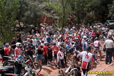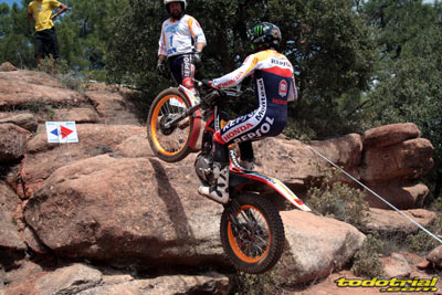 Diez eran los pilotos que se daban cita en la máxima categoría, los top mundialistas Bou (Montesa), Raga (Gas Gas), Cabestany (Sherco) y Fajardo (Beta), los aspirantes Moret (Montesa) y Borrellas (Gas Gas), destacando la ausencia de Pol Tarrés (Jotagas), el retornado Dani Oliveras (Ossa), el italiano Gianluca Tournour (Gas Gas) y los últimos incorporados y jóvenes valores Jorge Casales (Gas Gas) y Jesús Martín (Gas Gas), este último estrenándose valientemente en la categoría. Partiendo de 12:00 en adelante, había una hora para llegar al final de la zona 4, otra más para el final de la 8 y una más para terminar en la 12, por lo que se podía volver al paddock sin prisas y con el tiempo ya contabilizado, perfecto. El día amanecía claro y soleado, y las temperaturas eran muy altas y en aumento, al estar casi toda la península inmersa en una ola de calor excesivo para estas fechas. Así los termómetros marcaban más de 35º a media mañana, siendo esta una de las principales dificultades del trial, que se hizo muy duro con el polvo del recorrido, el sol que pegaba fuerte y unas zonas con pasos técnicos y complicados a lo que se añadían algunas que además eran tan largas que tan sólo unos pocos lograban finalizarlas en minuto y medio.