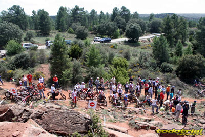 Al igual que en la cita anterior celebrada en Lozoyuela (Madrid) los aficionados que quisiesen podían seguir el trial en moto utilizando un peto que proveía la organización a cambio de una cuota simbólica de 5 euros, pudiendo también entrenar en las zonas habilitadas tanto el sábado como el domingo. Una buena idea ya que así además de estar todo mucho más controlado se colabora un poco con el moto club organizador, que falta hace en estos momentos de crisis y absoluta falta de apoyos. Los seguidores en moto no fueron demasiados, menos que en Lozoyuela, por lo que tampoco hubo acumulaciones en la interzona. A pie sí hubo bastante más gente, que disfrutaron de las espectaculares zonas, todas accesibles para el público y muchas de ellas fáciles de ver al estar sobreelevadas en las laderas que bordean los caminos. Sin embargo el hecho de que los tops mundialistas saliesen primero resta emoción al trial, y público a los demás pilotos, ya que todo el mundo se va detrás de Bou y Raga pricipalmente. Aunque esto se supone que debe beneficiar a los jóvenes que suben para tener posibles referencias, en realidad no es así, ya que con el ajustado tiempo y sin apenas detenerse a ver las zonas no llegan casi nunca a verles.