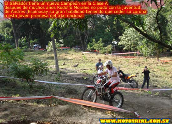 El sábado 10 de noviembre se realizó la sexta y última fecha del campeonato nacional de mototrial de El Salvador, el cual se desarrolló en el predio de la alcaldía municipal de Antiguo Cuscatlán, departamento de La Libertad. En ella se tuvo como invitado al Sr. Alejandro Moncada de Honduras participando en la categoría B.