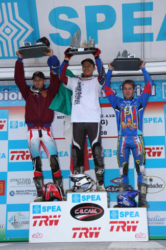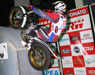 Miki Orizio se mostraba también fuerte y quedaba segundo, aunque ya con 19 puntos, mientras el desafortunado Francesco Iolitta después de haber conquistado el accesso a la final, en la zona cuatro sufría una fuerte caída que le obligaba a saltarse la última zona. Afortunadamente solo sufría una fuerte contusión, por lo que el piloto piamontés se presentaba en la entrega de premios con una bolsa de hielos sobre su costado derecho. La próxima prueba del Campeonato de Italia Indoor será el 12 Junio en Cantù (Co).