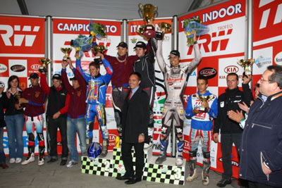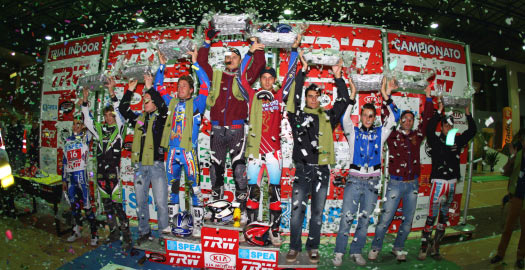 Una rica y coreográfica entrega de premios cerraba el Campeonato Indoor Trofeo TRW, que en su clasificación final vuelve a ver a Fabio Lenzi (Future trial) campeón por sexta vez consecutiva, seguido de Matteo Grattarola (Sherco PRT), Miki Orizio (Scorpa X4) y Daniele Maurino (Spea Gas Gas).