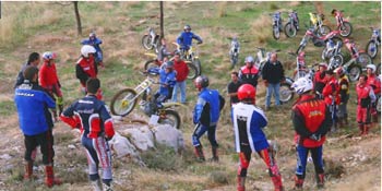 Merecido descanso y a almorzar, relajarse y comentar las peripecias de cada uno. Los participantes, que si yo he subido aquel escalón a cero, que si yo me di una torta de escándalo, etc... Los monitores comentando las evoluciones de sus "alumnos". Lo típico. Tras la comida y un pequeño descanso vuelta a la moto para continuar la actividad para acabar el día con una pequeña y distendida excursión con participantes, compañantes y monitores.