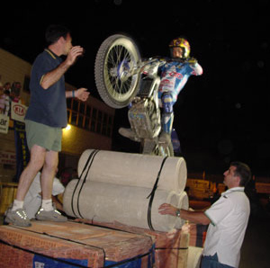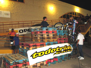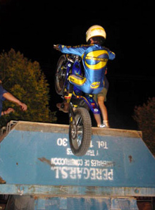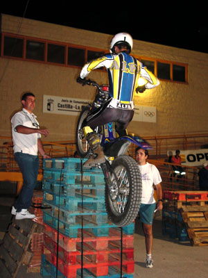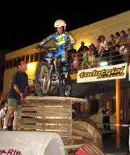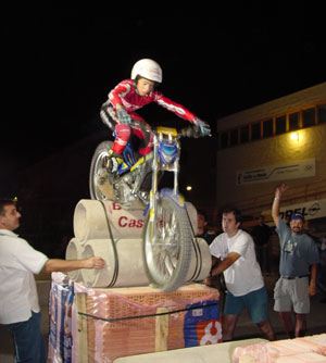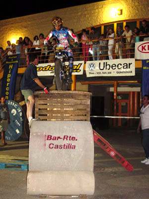 A las diez de la noche, los pilotos daban una vuelta por el pueblo haciendo todo tipo de malabarismos, mientras los viandantes quedaban atónitos a su paso. Media hora más tarde daba comienzo el espectáculo. La primera zona era la más sencilla, para ir calentando a participantes y público, compuesta por paquetes de ladrillos y pequeños tubos de hormigón. Ya desde entonces se destacaron dos pilotos, Antón, muy en forma tras su debut en el Campeonato del Mundo, y Pepe Martí, con sendos ceros.